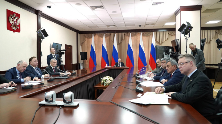 Заседание Совета прошло в Пятигорске. Трансляцию мероприятия вели телеканал "Россия 24" и медиахостинг "Смотрим". Путин на совещании отметил силу страны в ее культурном многообразии и сильную консолидацию общества на фоне западных санкций.
